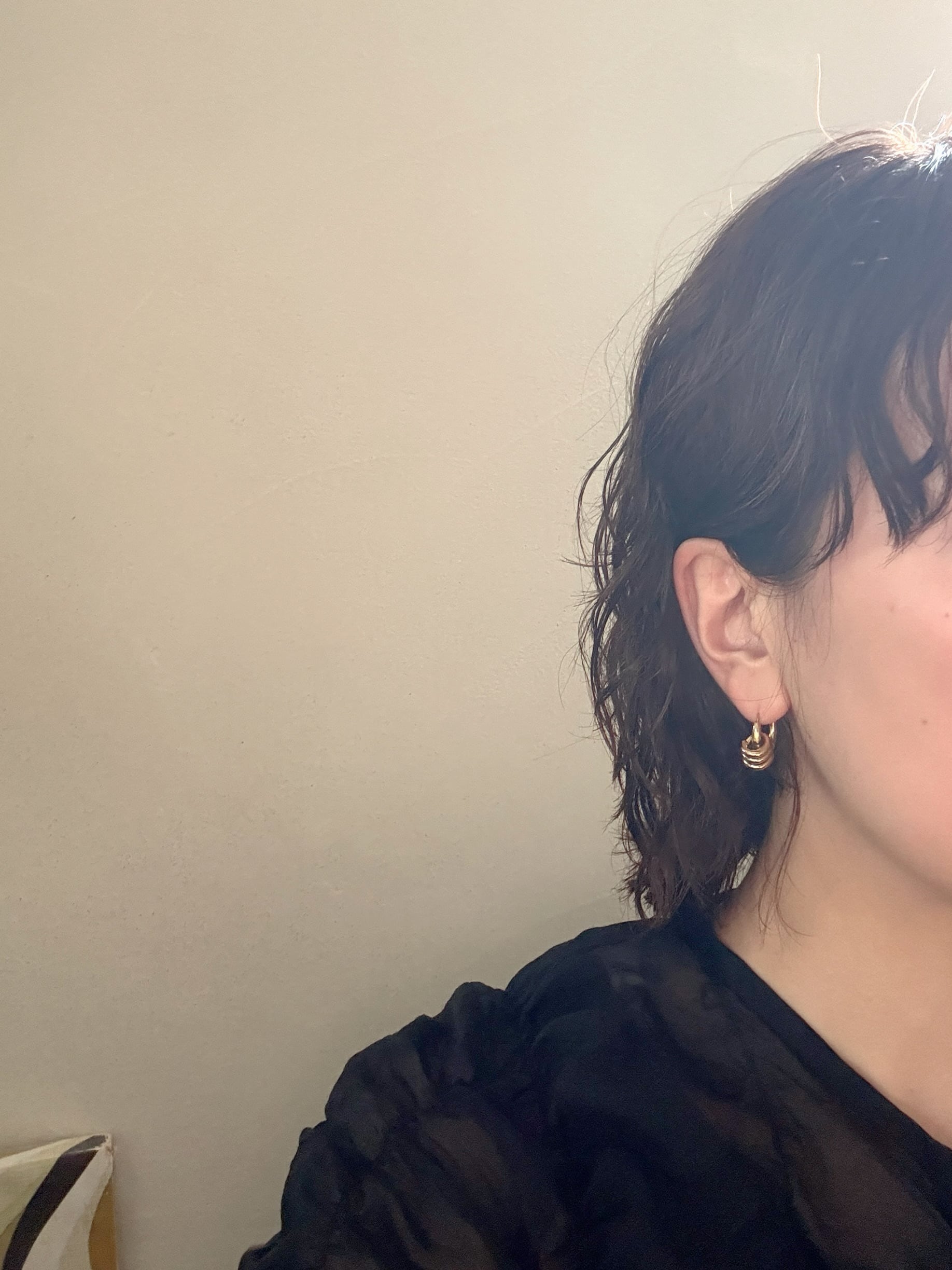 シンプルなフープピアスのみでも