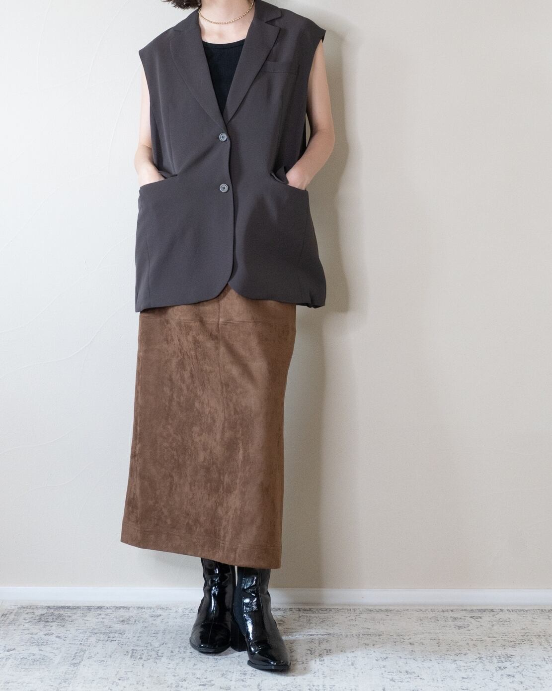 しっとりとしたスエードライク素材を使用した、上品なロングスカート