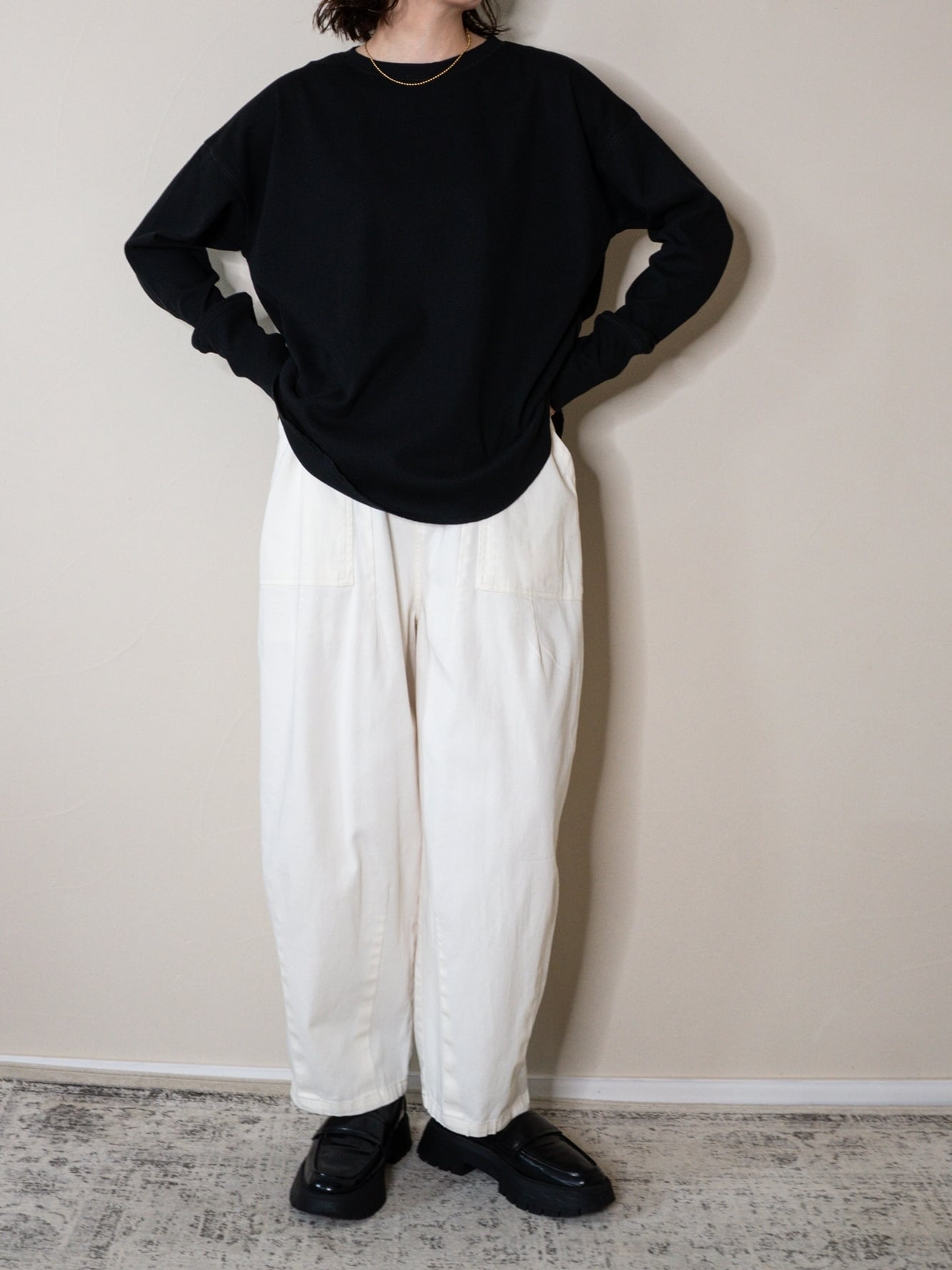 透け感もなく、カジュアルすぎず上品さもあり、リラックススタイルからきれいめカジュアルまで幅広いシーンで活躍するのが嬉しいアイテム!