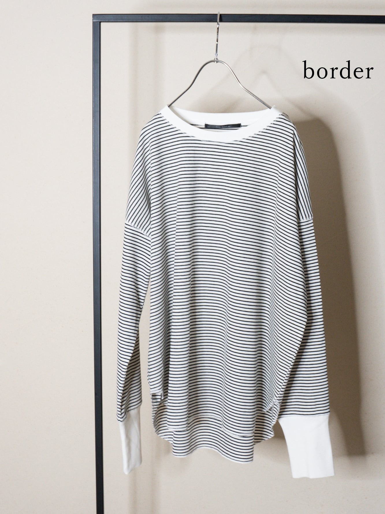 長めの袖リブが特徴的で、手元にくしゅっと寄ったシルエットが可愛らしく、さりげない抜け感を演出してくれるアイテムは、シンプルなデザインながらも、ディテールで雰囲気のあるスタイルでご着用いただけます