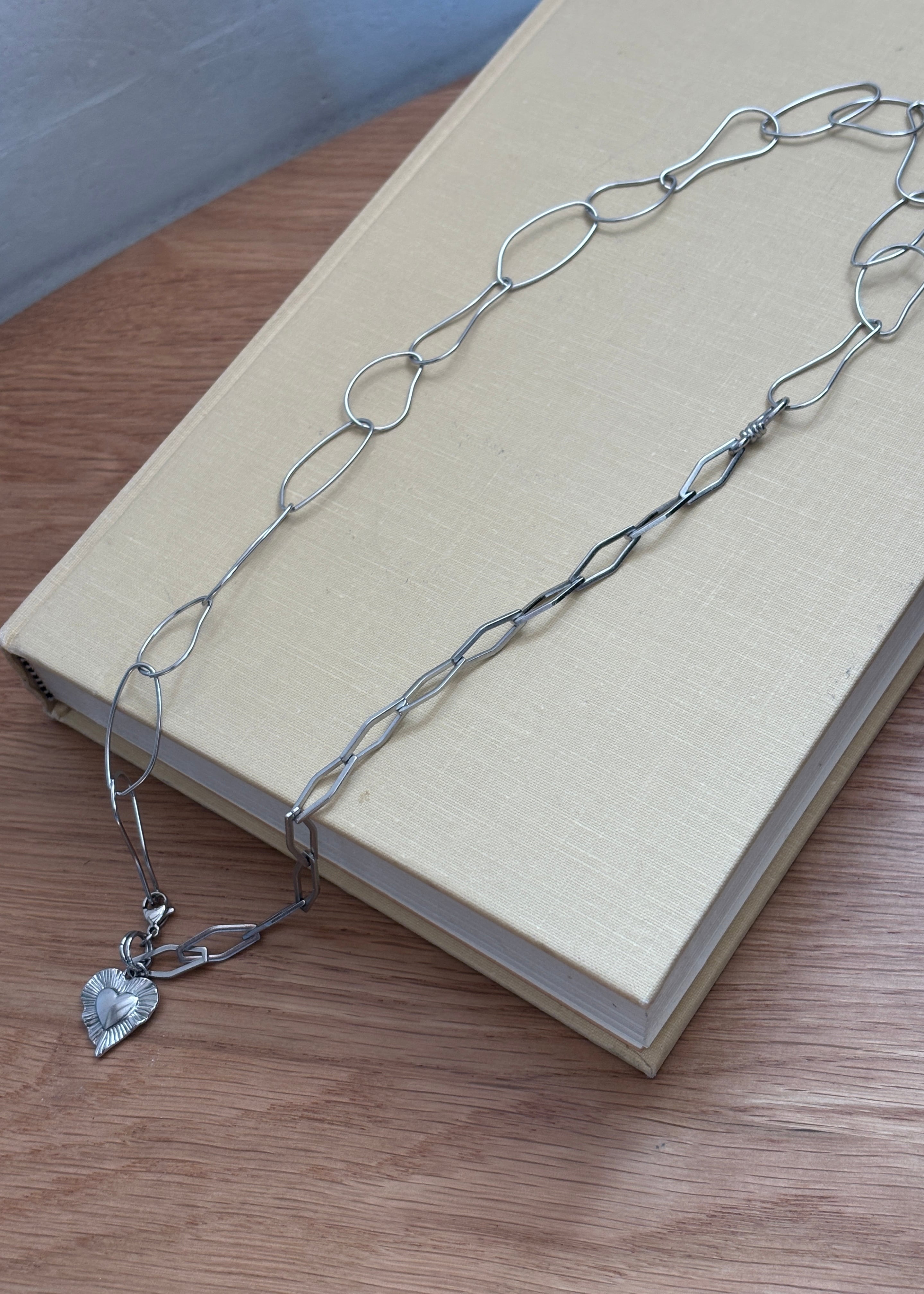 サージカルステンレスハートロングネックレス
