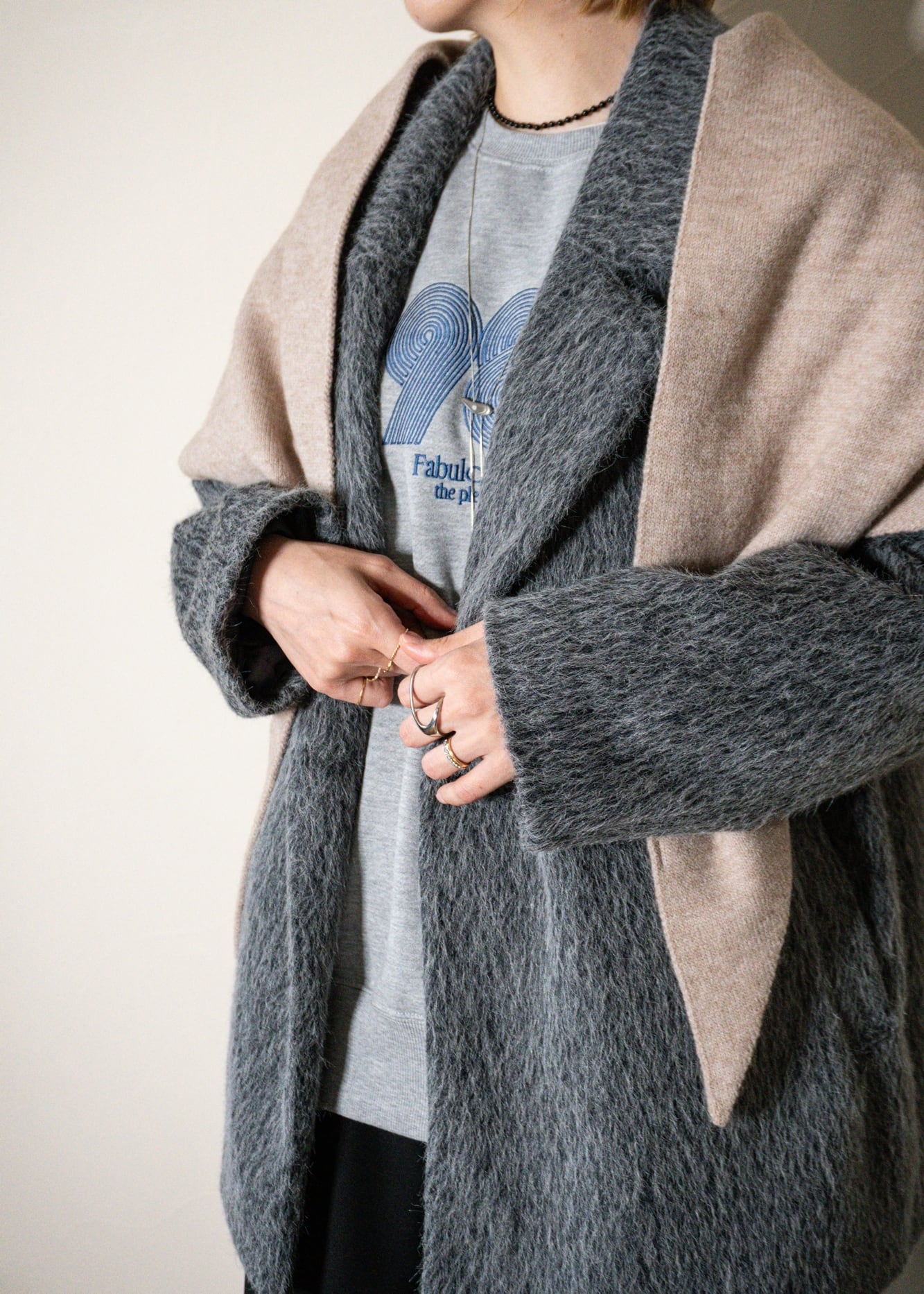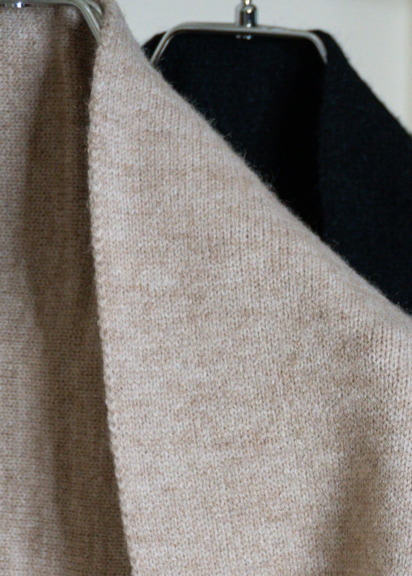 肩にかけるだけでスタイルが完成する3角形のスカーフライクなニットスカーフです