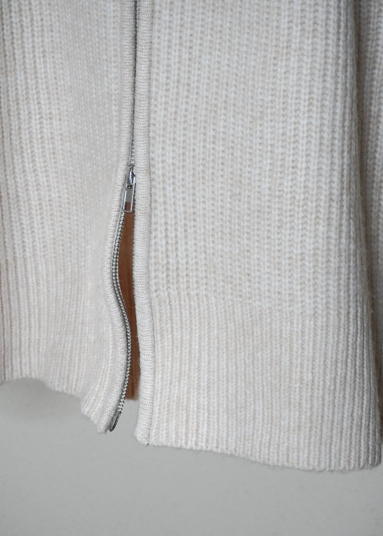 ダブルジップなので、裾を開けてウエストをチラ目せすると、重心を上にあげることで、よりバランス良くご着用いただけます