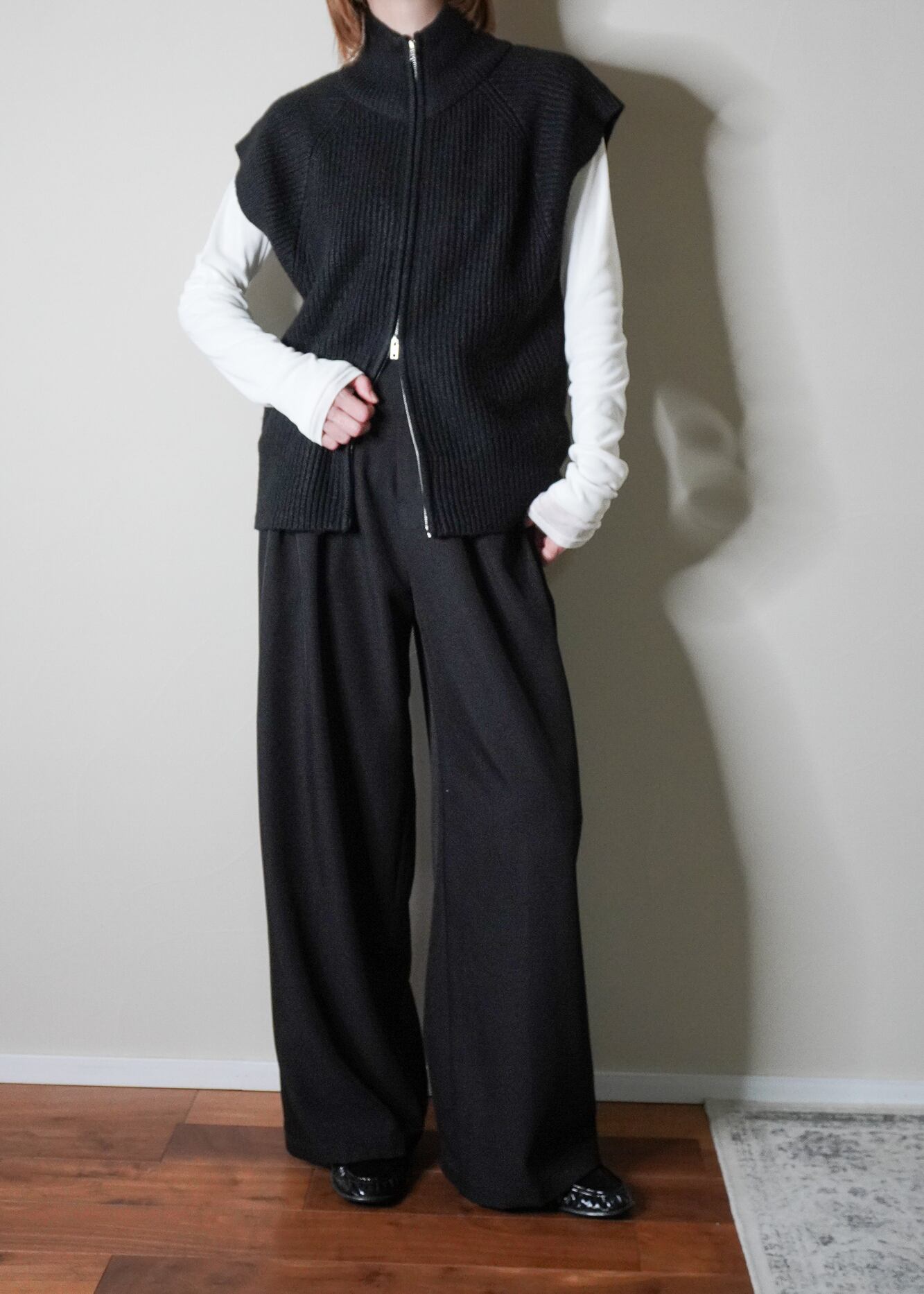 軽いボリューム感のリブニットなので、春まで長く着れちゃうのも嬉しいポイントなんです