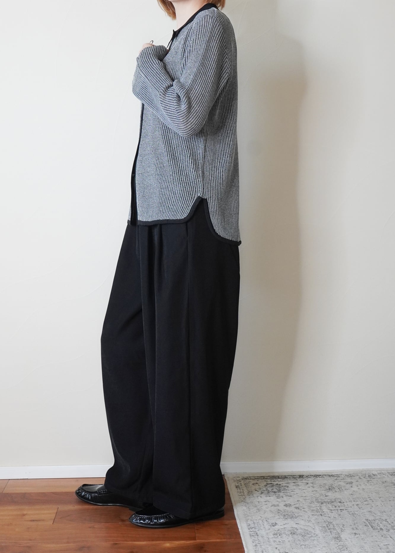 ゆとりのあるワタリから裾にかけて自然に絞り込んだ上品なカーヴィシルエットは体型を選ばずに、着る方を美しく見せてくれるパンツです