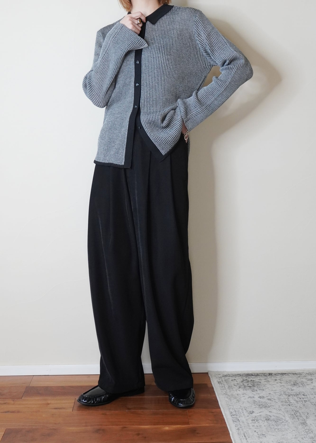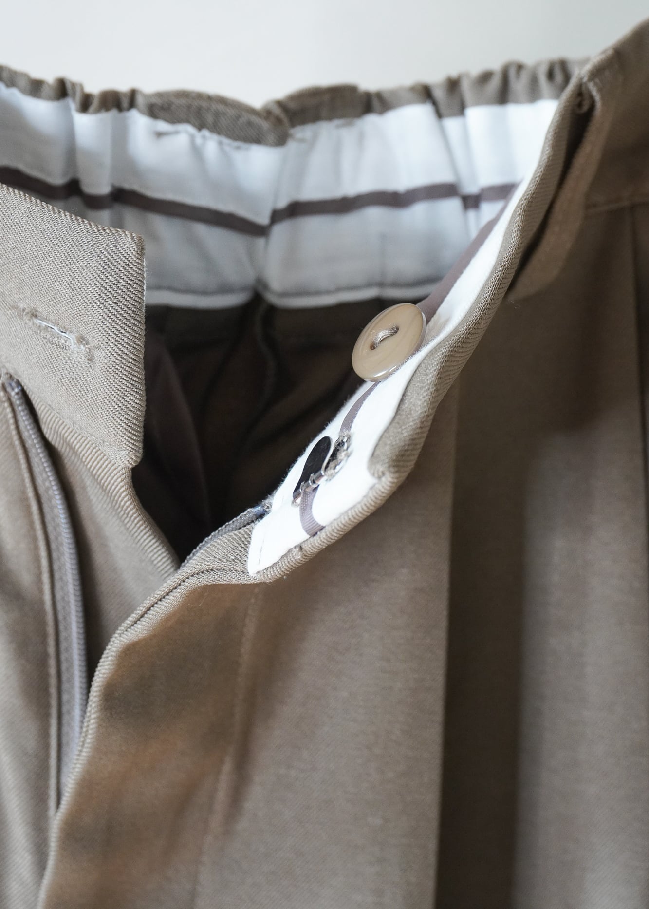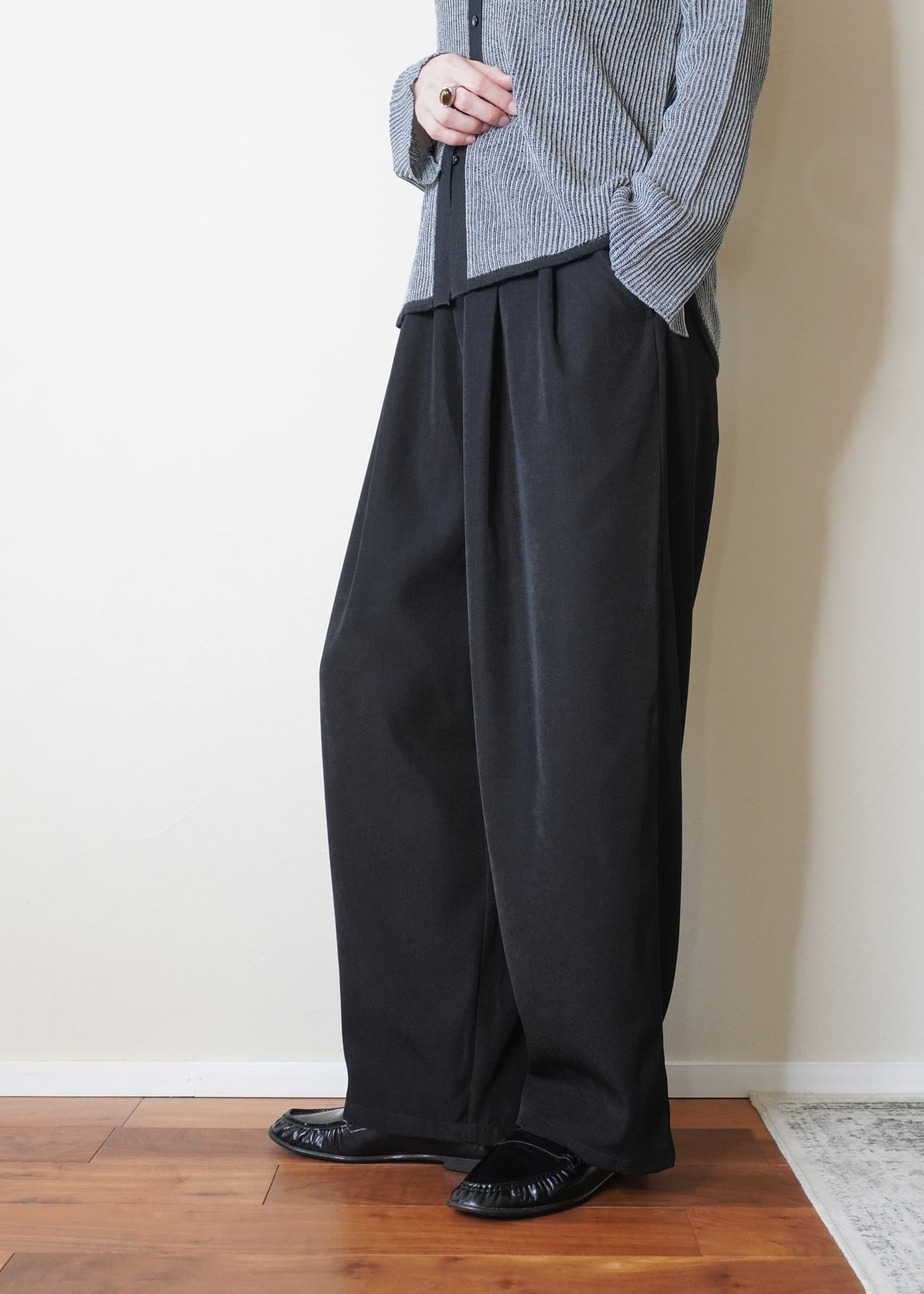 フロントに深めのタックを入れて、ヒップ周りにボリューム感をもたせて、立体的に仕上げた絶妙なシルエット