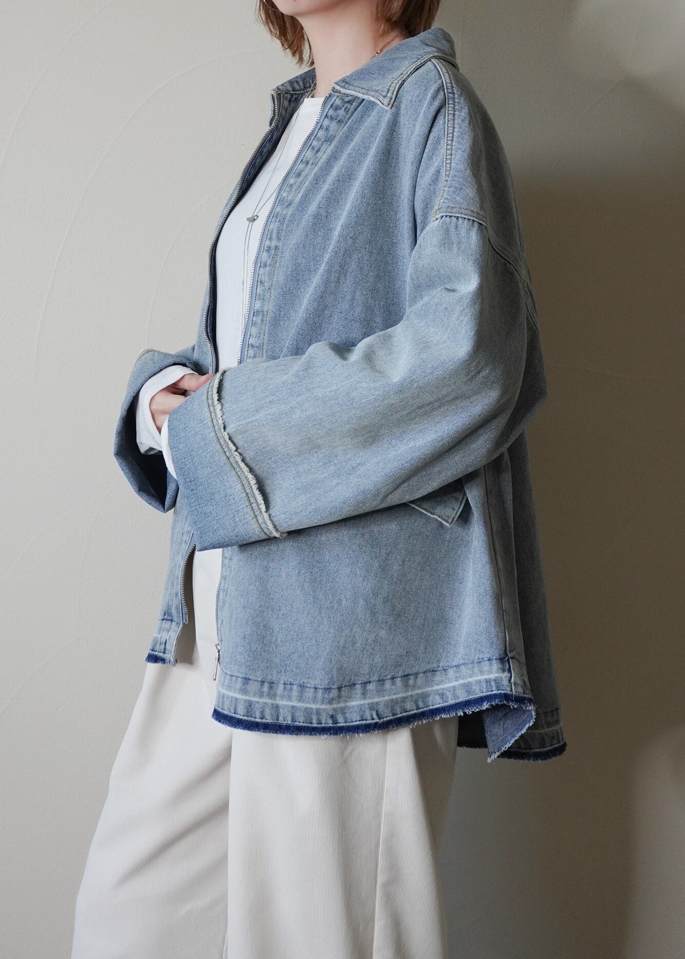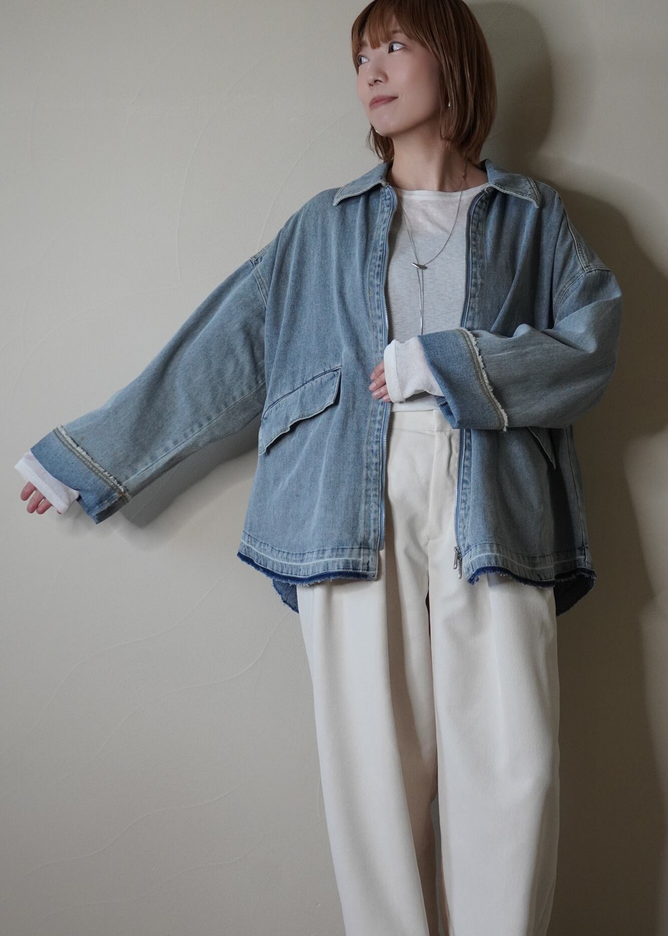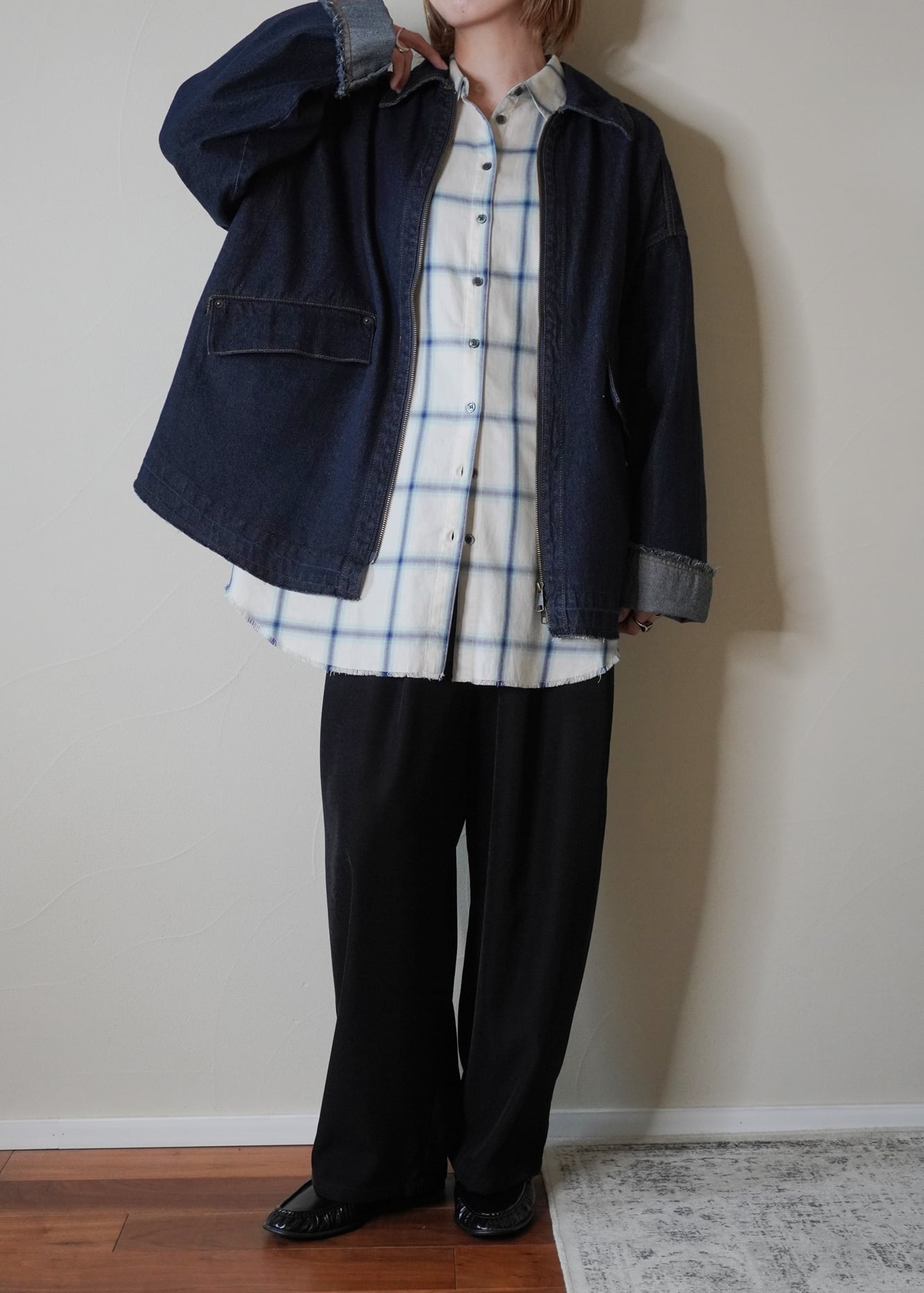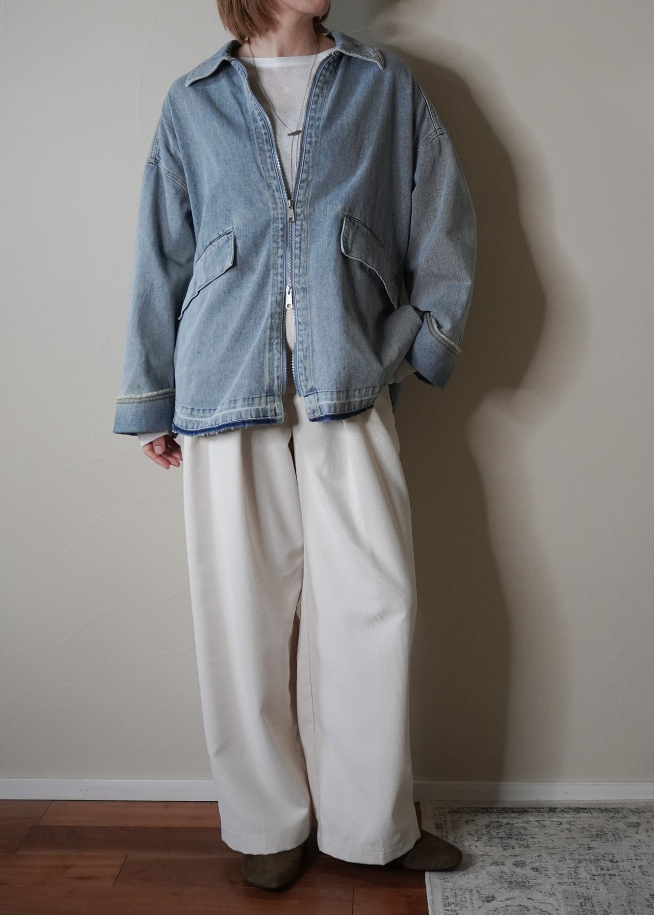 デニムJKですがファスナーを閉めてシャツぽい着こなしもおすすめです