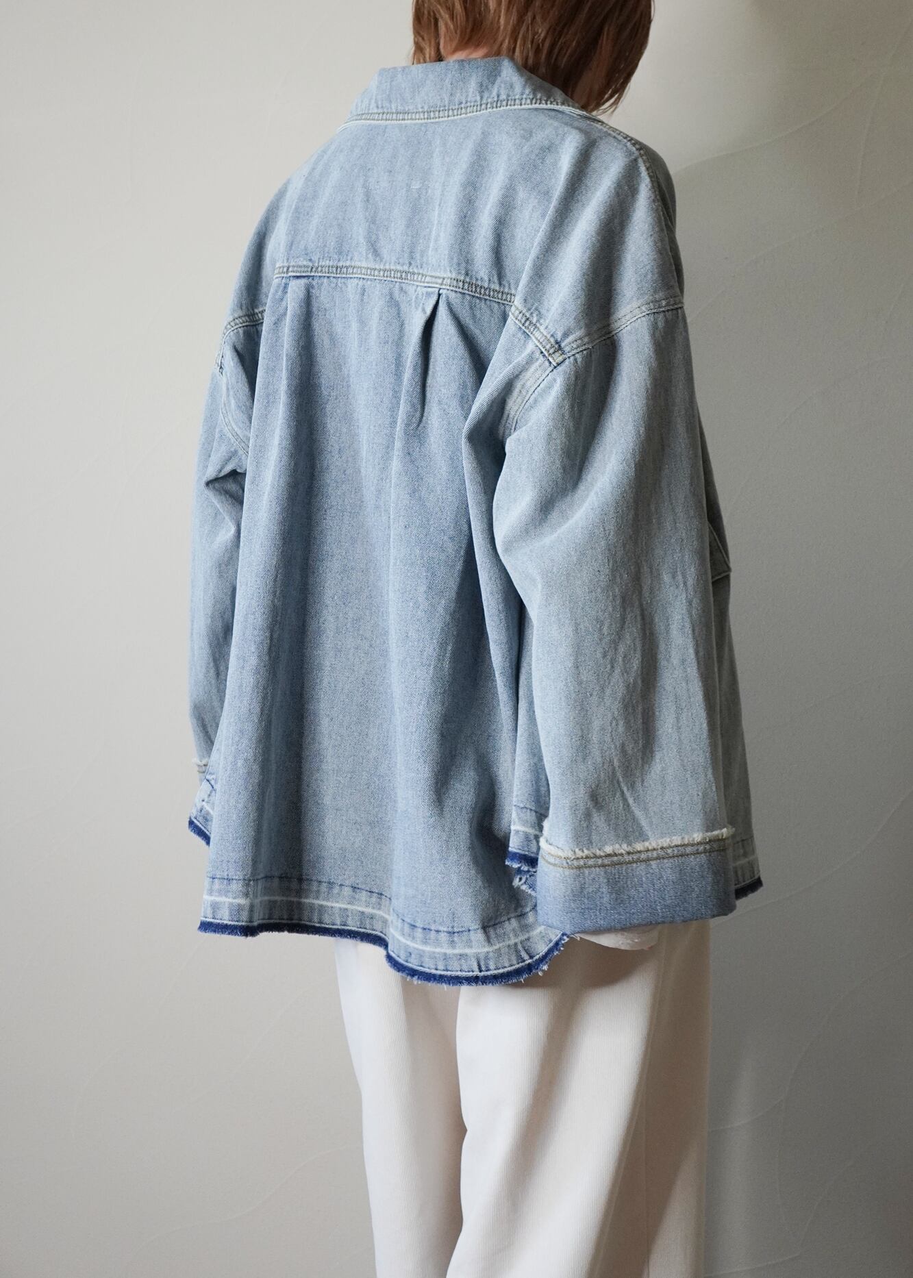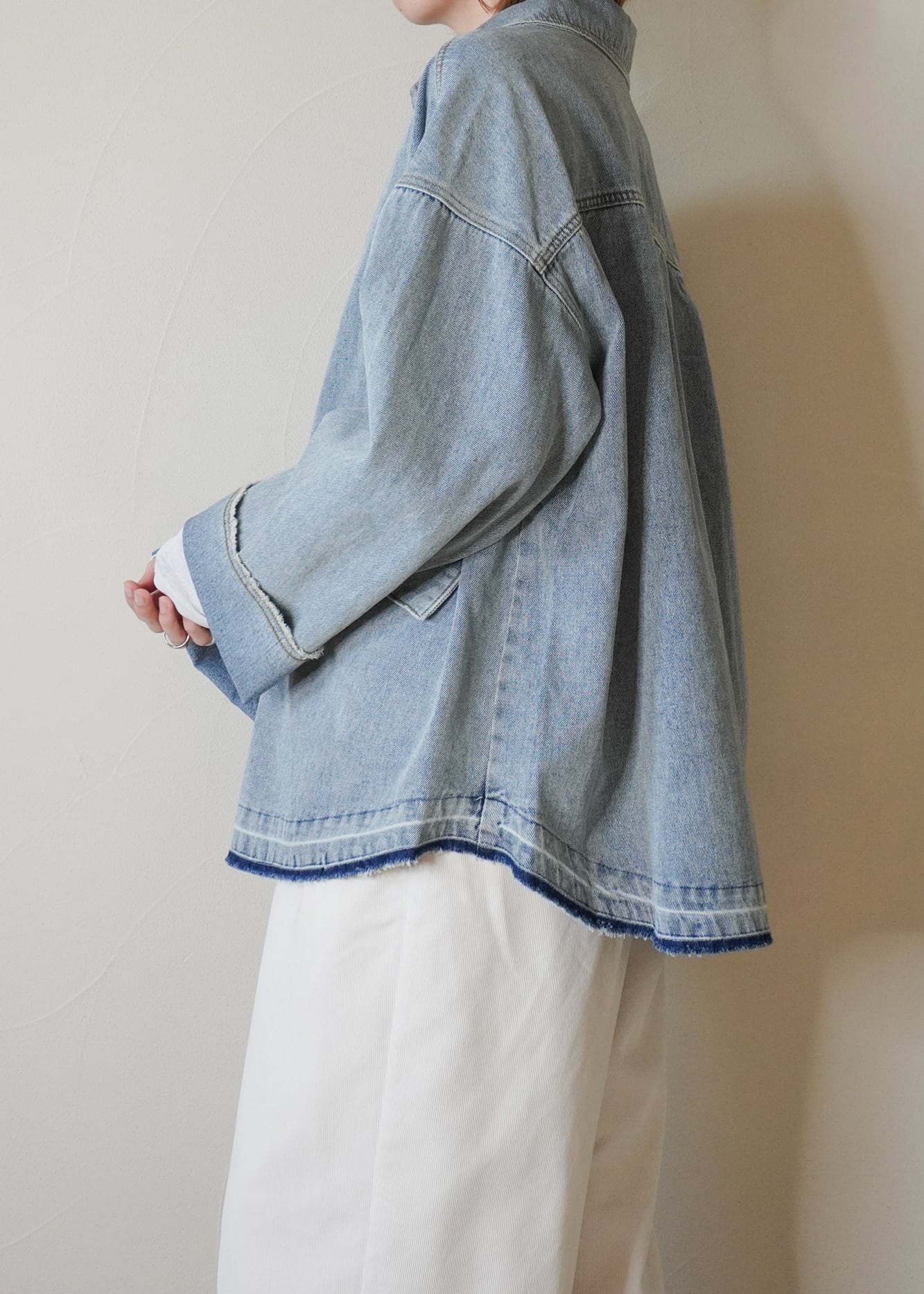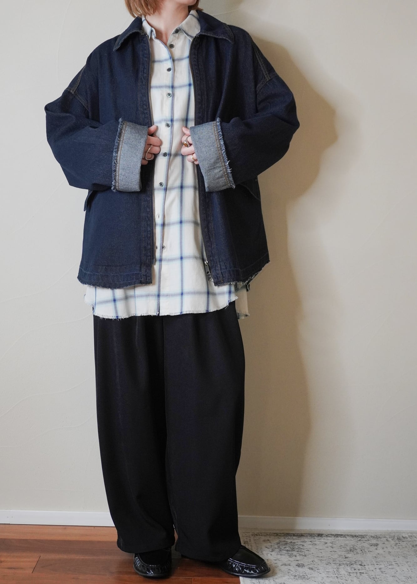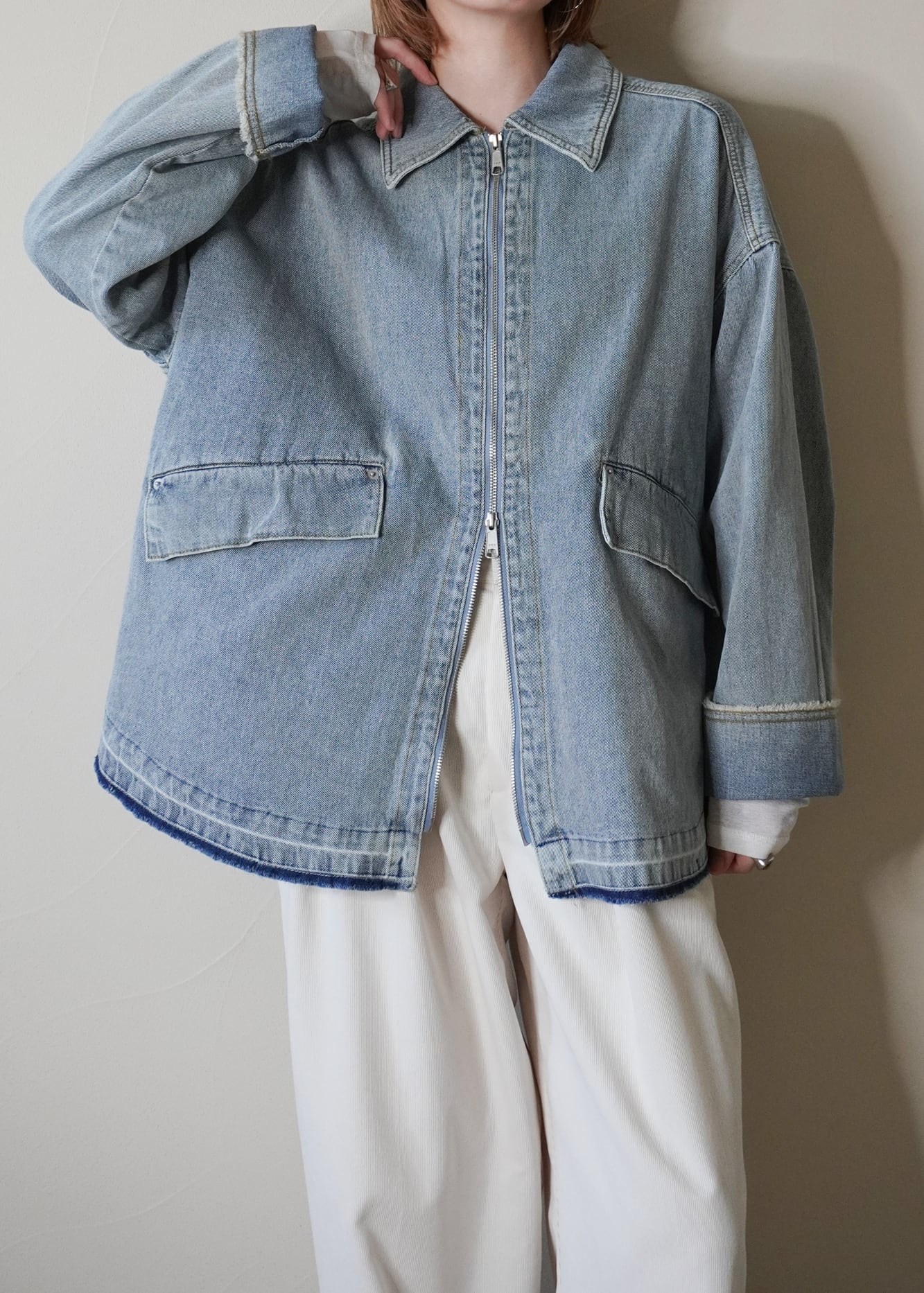 デニムJKですがファスナーを閉めてシャツぽい着こなしもおすすめです