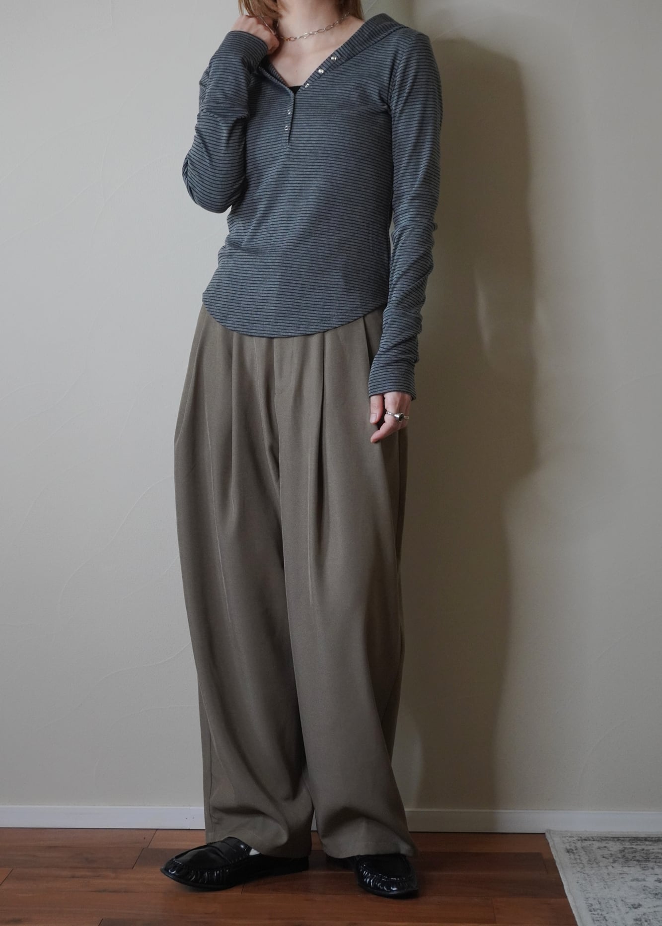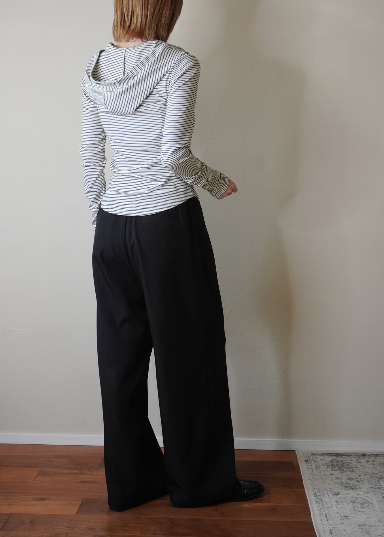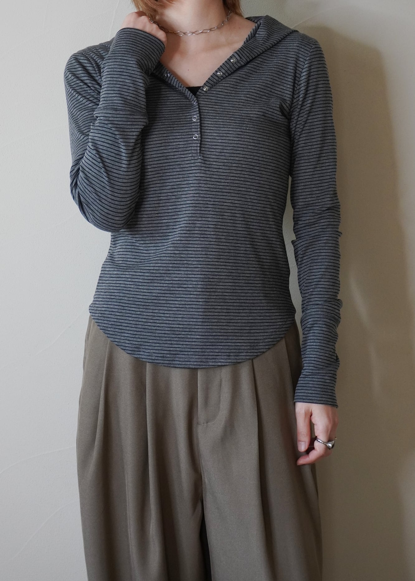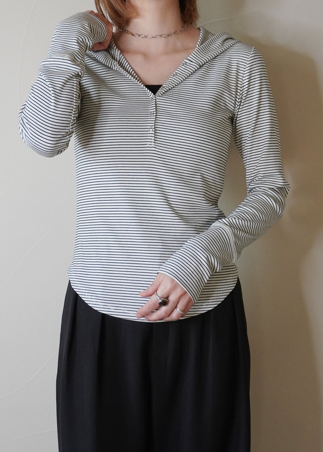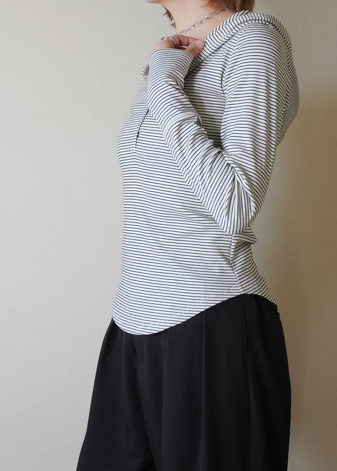 細ピッチのボーダーで、キレイ目コーデに合わせても自然な抜け感をプラスしてくれます