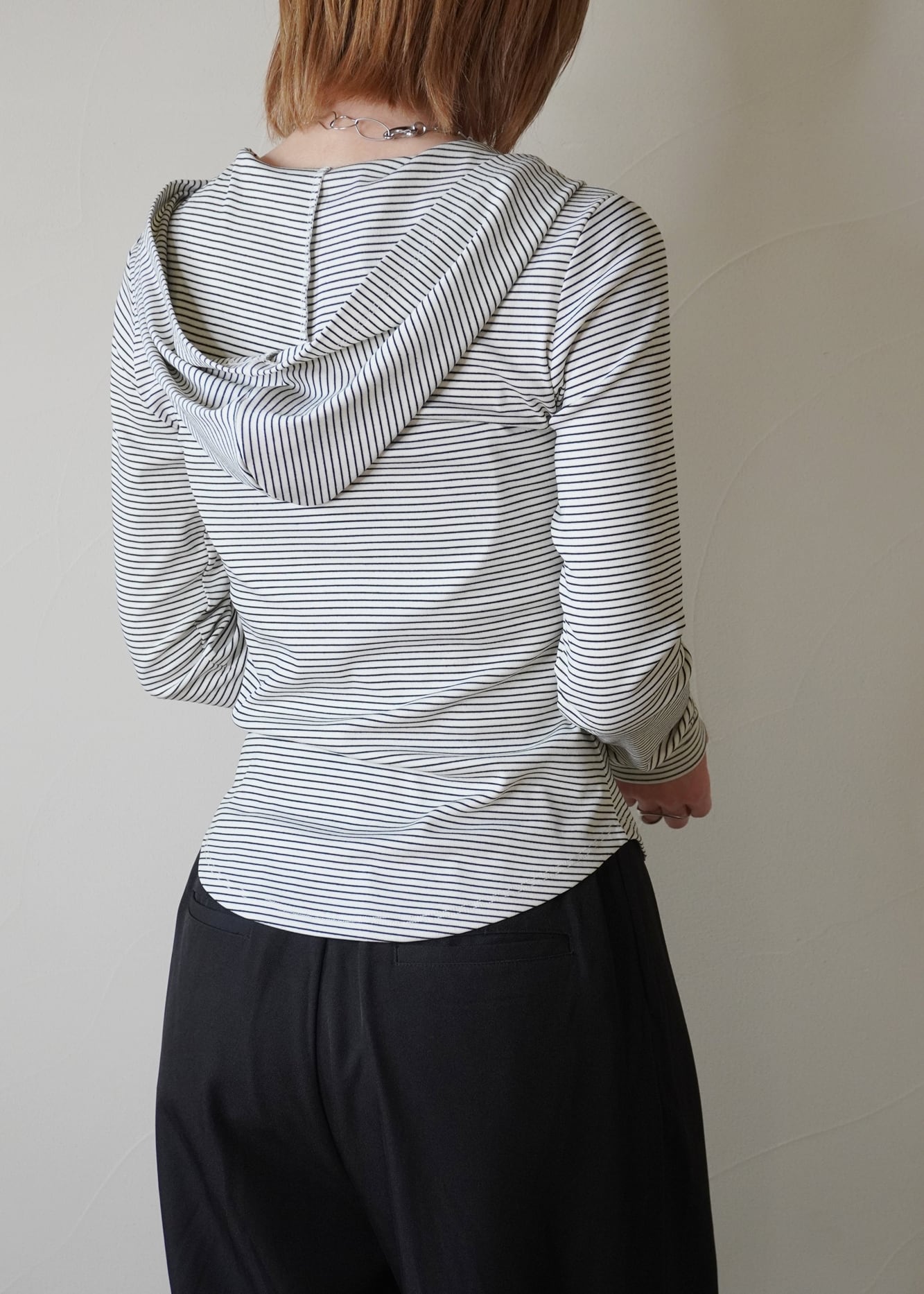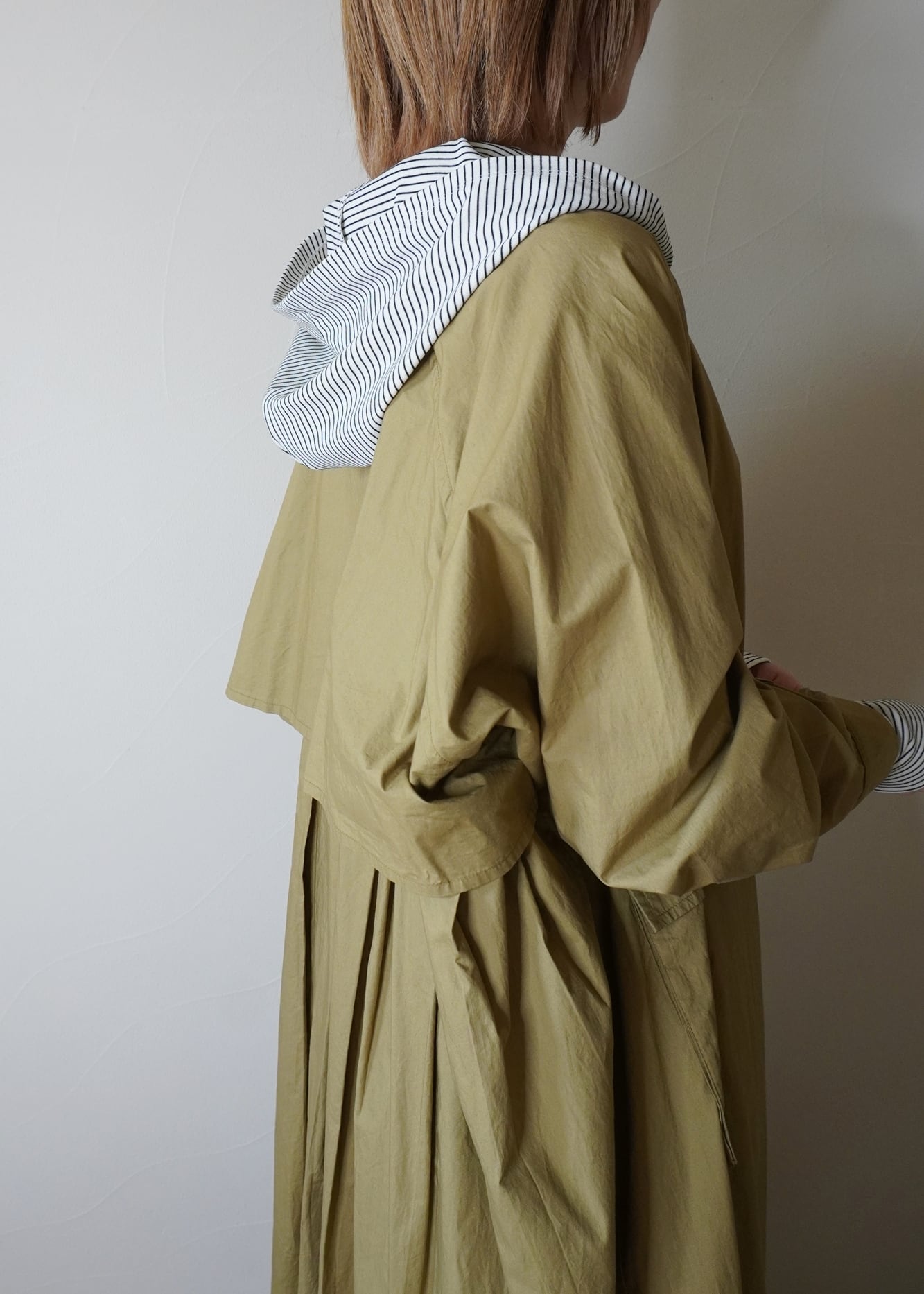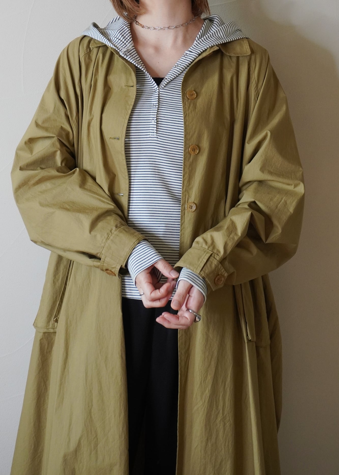 大き目のフードは、薄くてもしっかり立体感があるのでジャケットやコートに合わせても綺麗に決まります