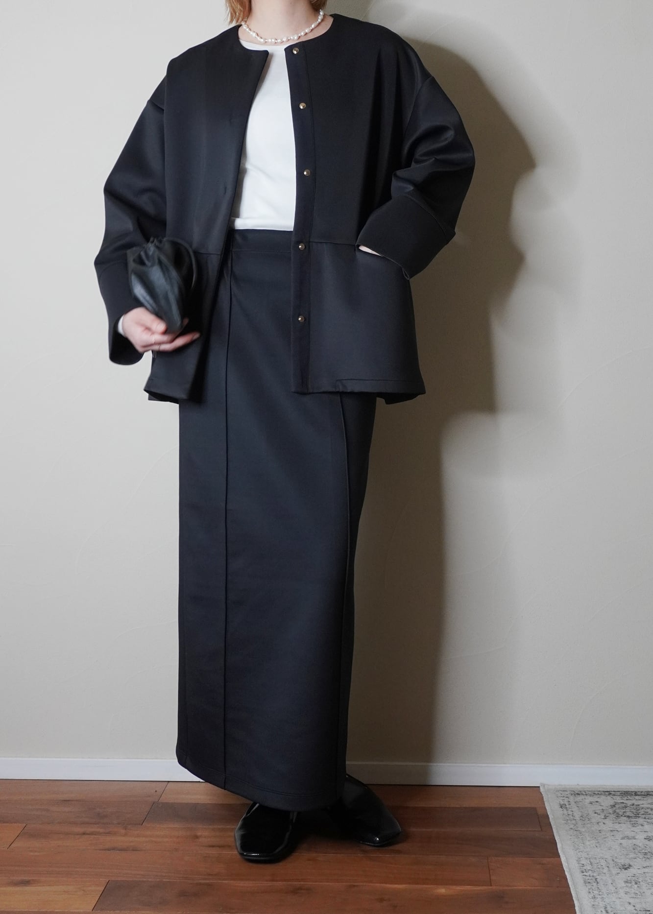 同素材のスカートとセットアップで、
