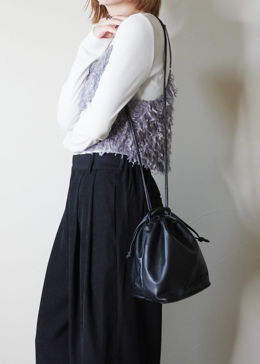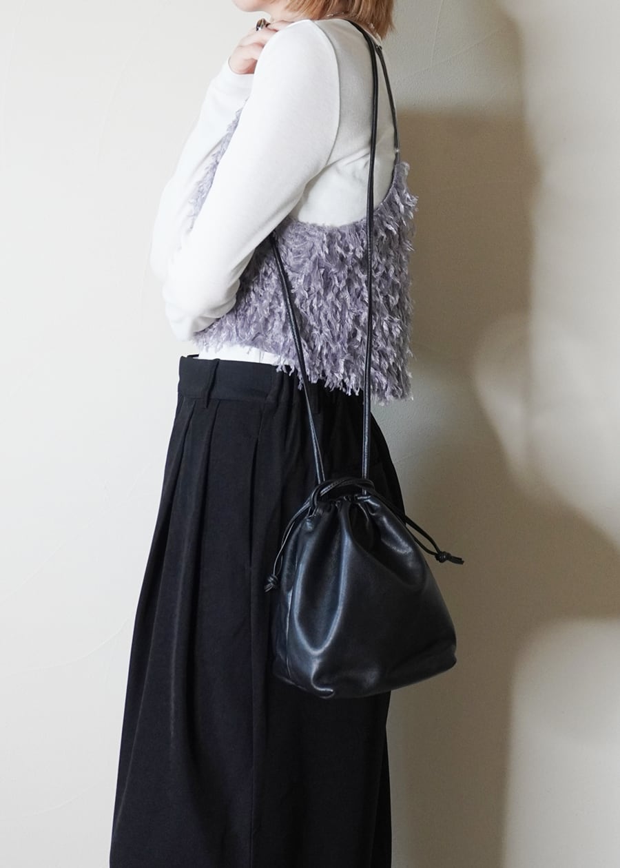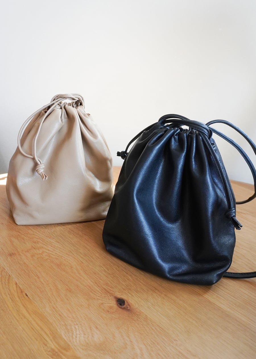 そんな素材感を生かしながら、巾着のようにキュッと口を絞ることで柔らかなレザーの質感をを立体的に表現したシンプルなフォルムが大人の女性にぴったりなデザインに仕上げました