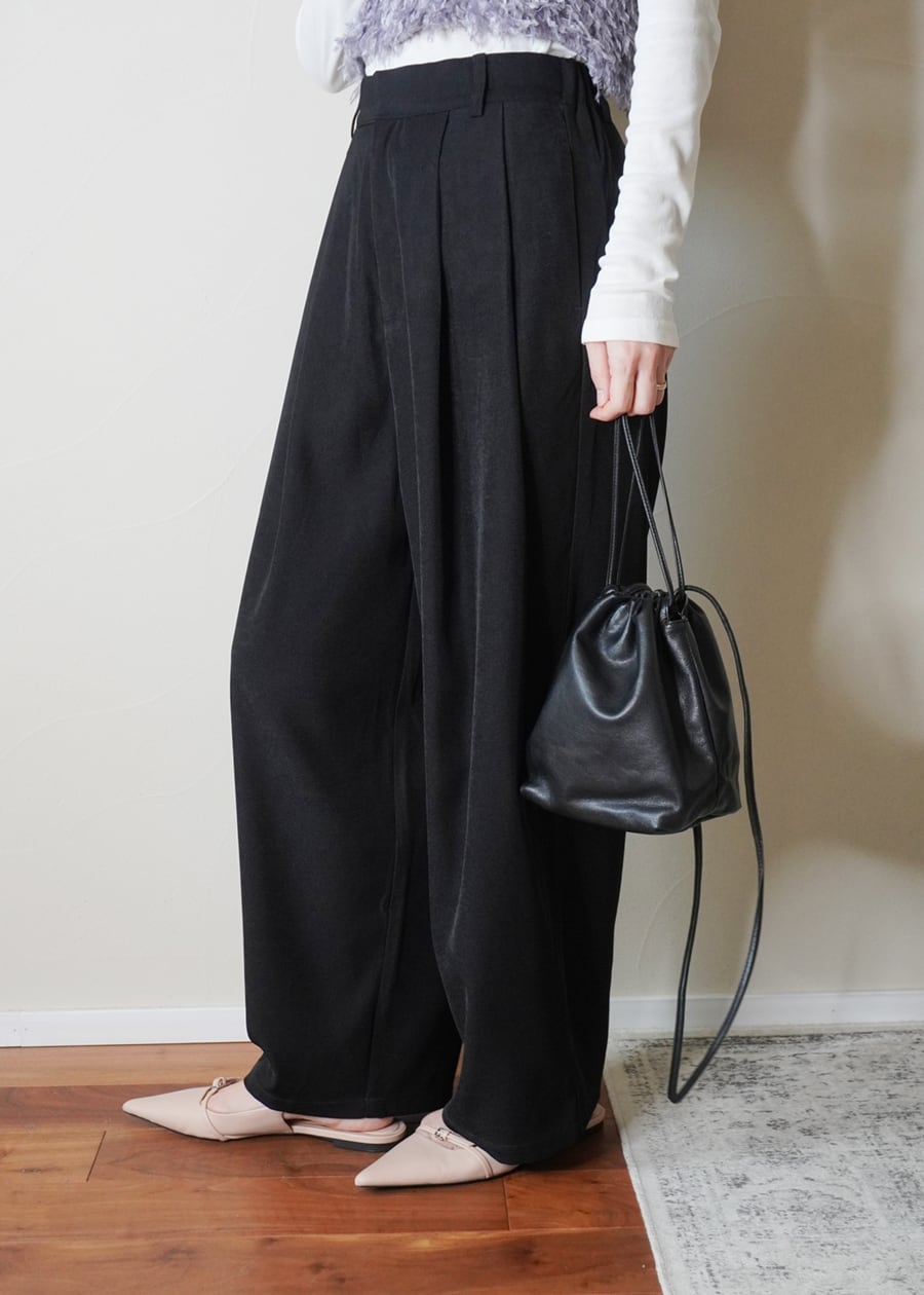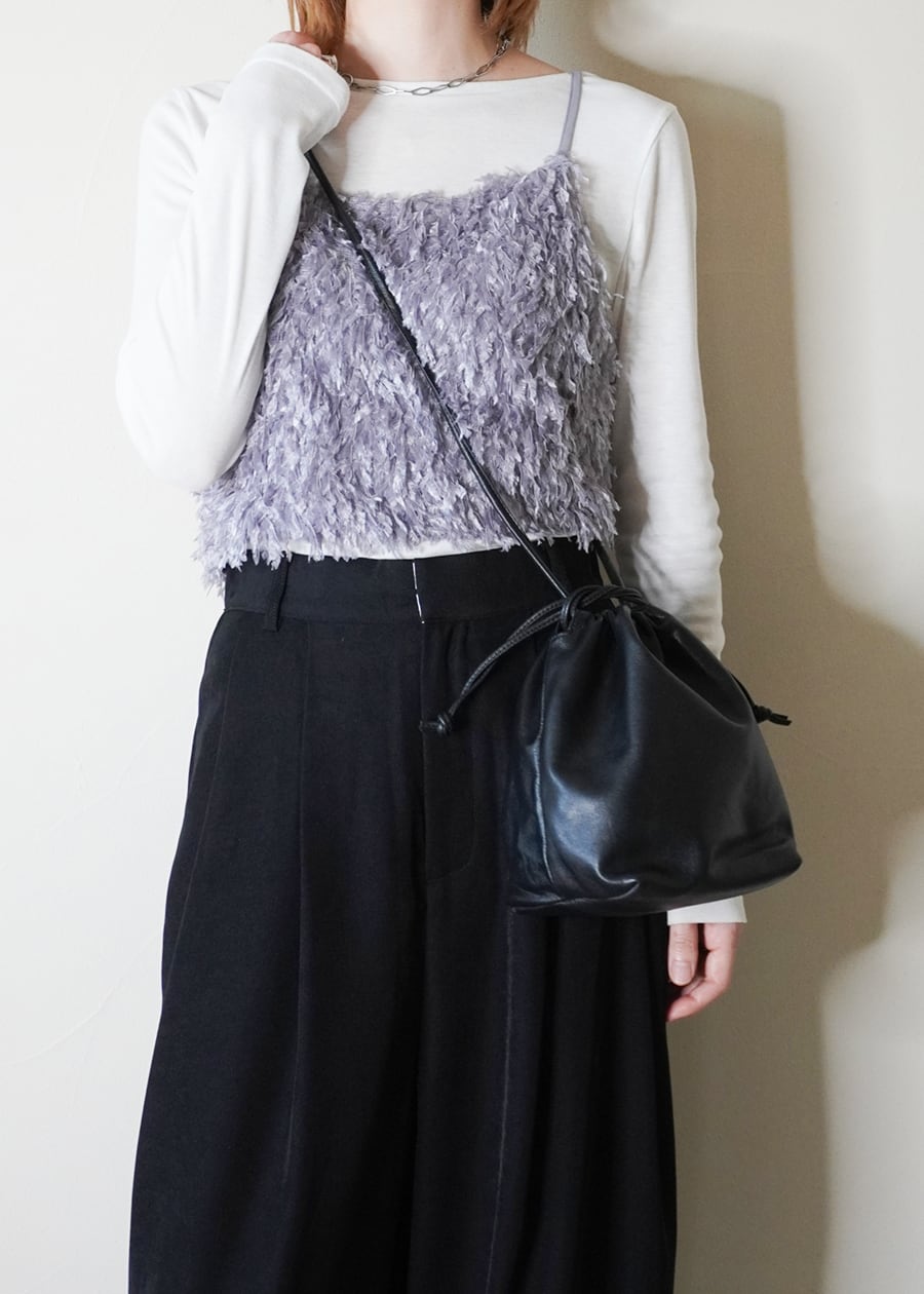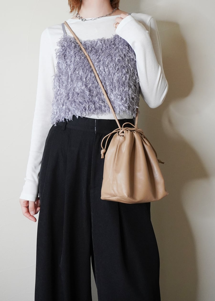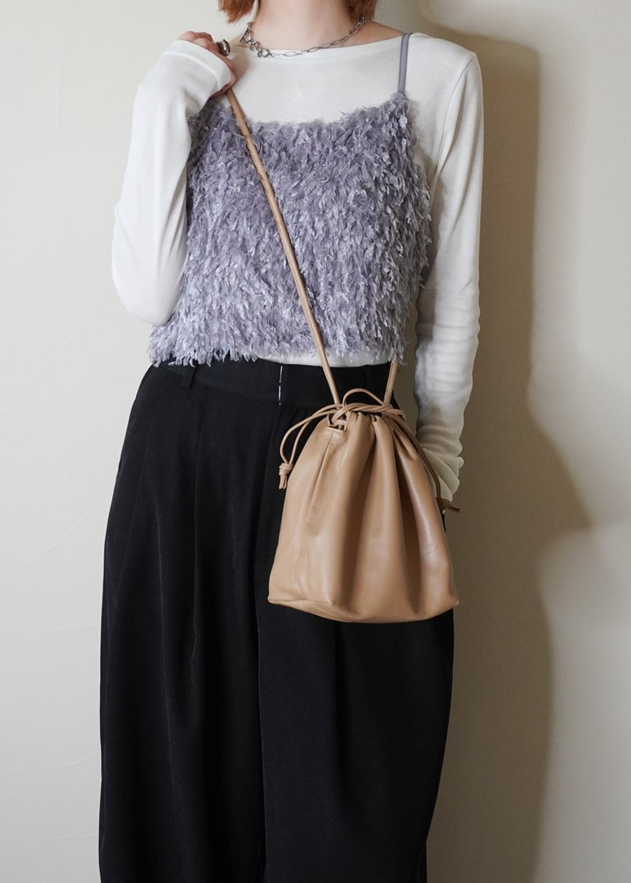 そんな素材感を生かしながら、巾着のようにキュッと口を絞ることで柔らかなレザーの質感をを立体的に表現したシンプルなフォルムが大人の女性にぴったりなデザインに仕上げました