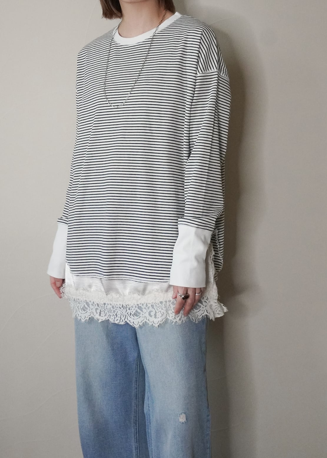 一枚でも、ジャケットやコートのインナーとしても、またビスチェやブラウスとのレイヤードアイテムとしても、着るシュチュエーションやコーデによって万能に着まわせるアイテムに仕上がっています