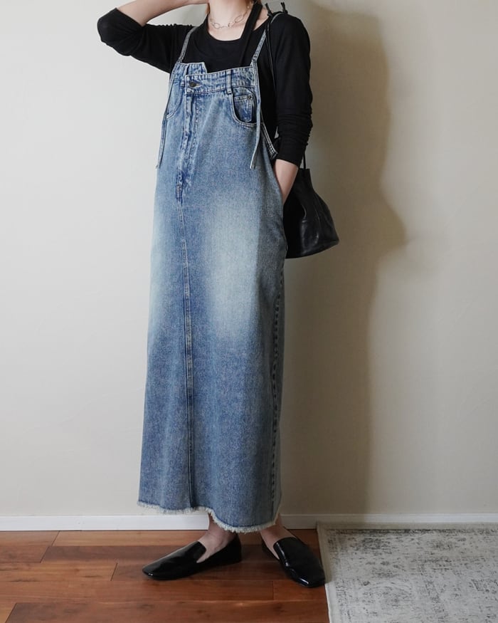 デニムの定番なイメージと、ヴインテージ感のある個性的なデザインで、リラックスしながら自分らしいオシャレを楽しんでいただけるワンピース