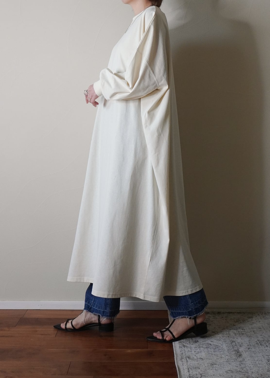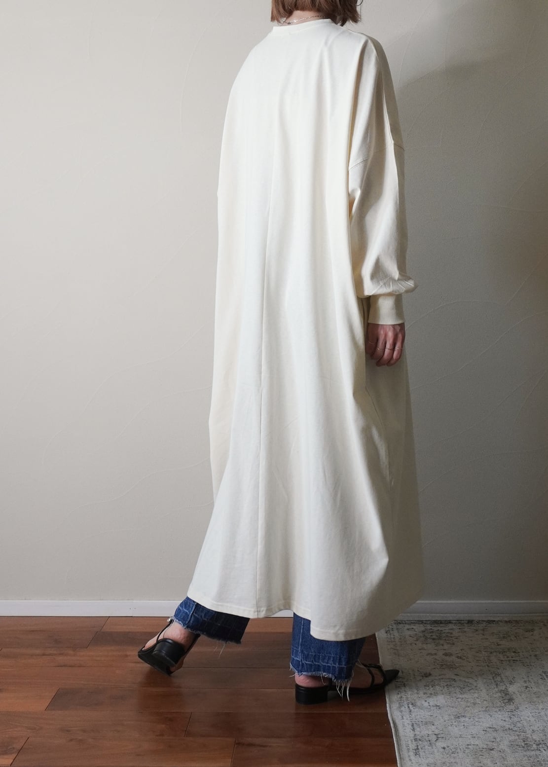 ボリュームスリーブと長めの丈感がシンプルな中にもさりげない存在感をプラスします。