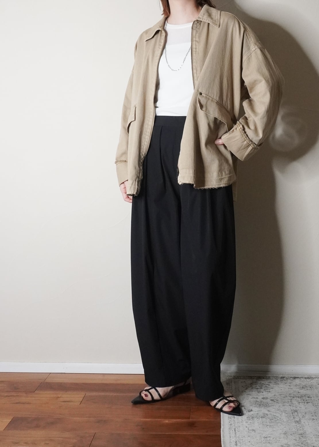 ワイドパンツやスカートで女性らしいコーデにも、さらっと合わせていただけます。