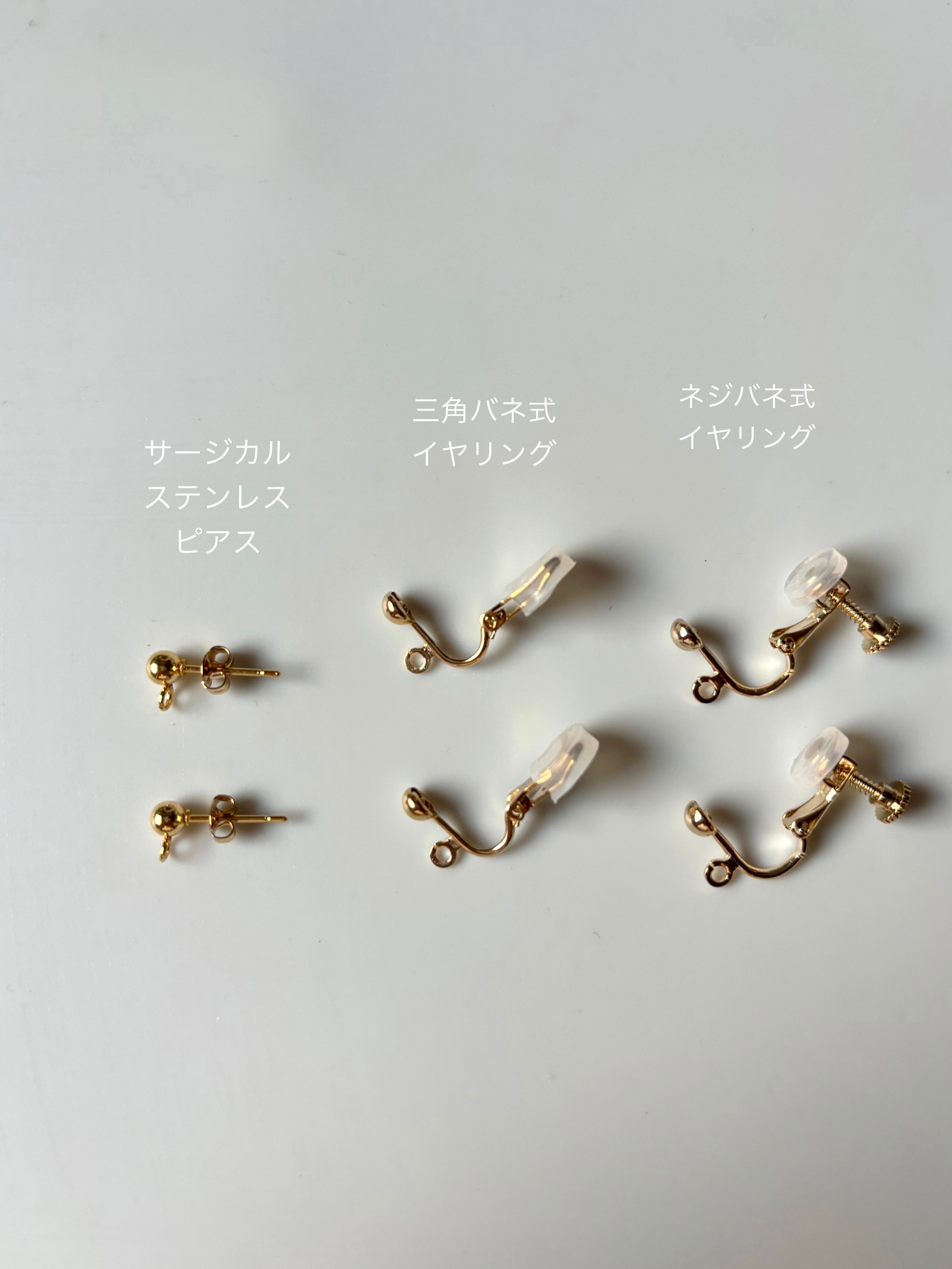 ※イヤリングは、三角バネ式とネジバネ式