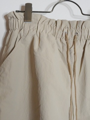 □ウエストはシャーリングのドローコードで柔らかくストレスなしの着心地