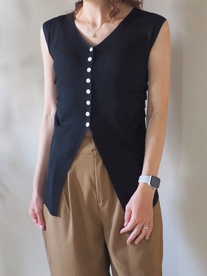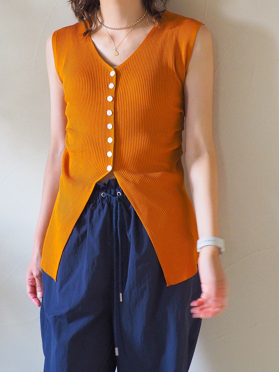 程よいVネックとハイウエストのラインからの深いスリットがスッキリとしたラインを強調してくれるんです