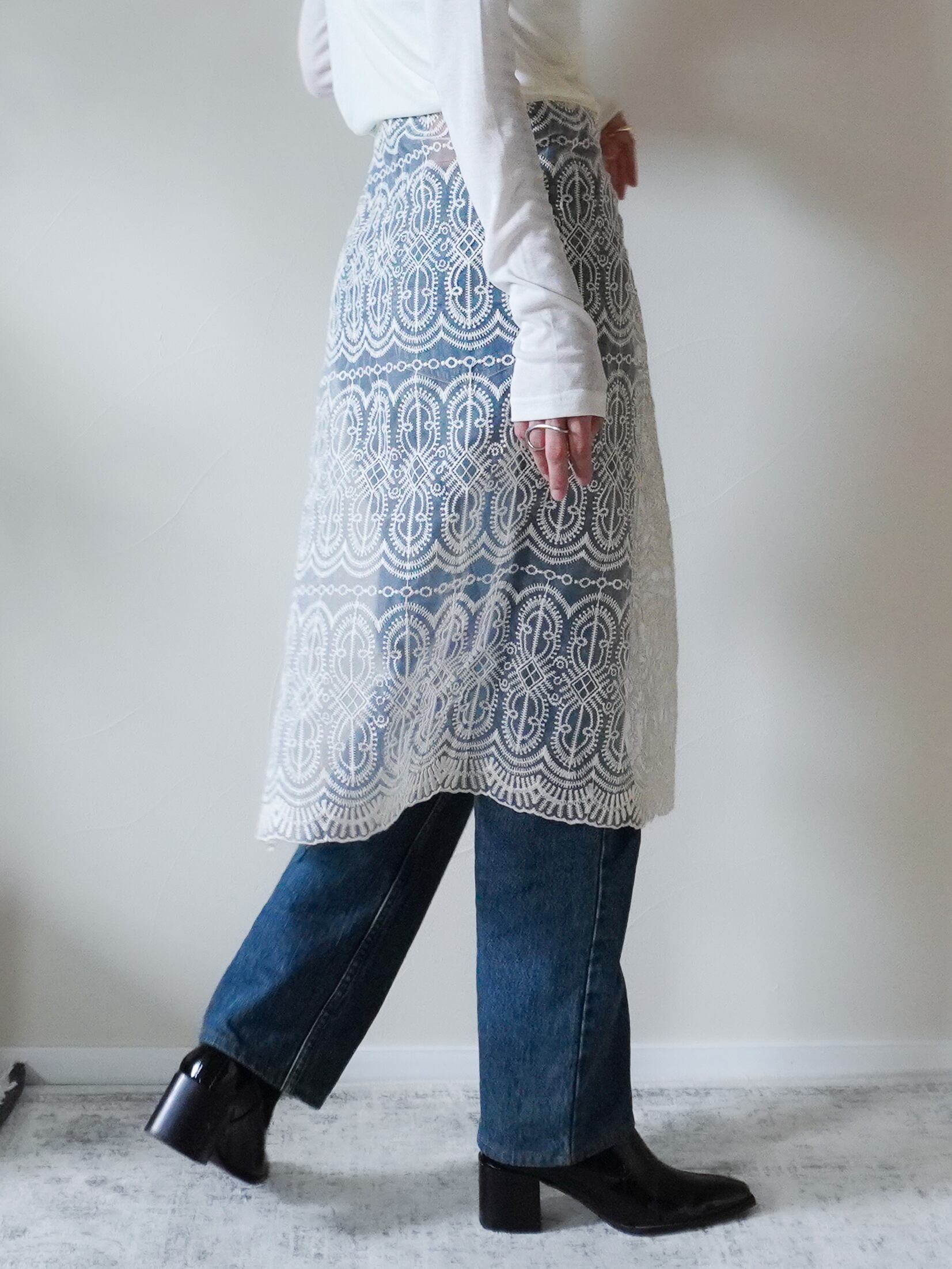 上質でハリのあるオーガンジー素材に繊細な刺繍を施したラップスカート