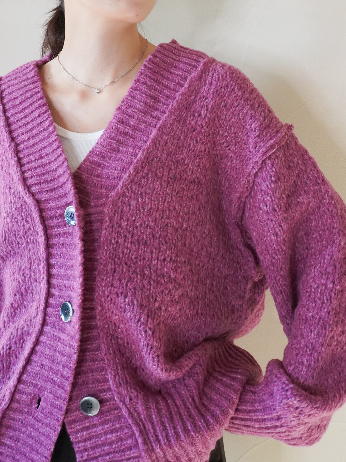 濃淡のある糸がミックスされたローゲージの糸をざっくりと編み上げたニュアンスのある仕上がりです