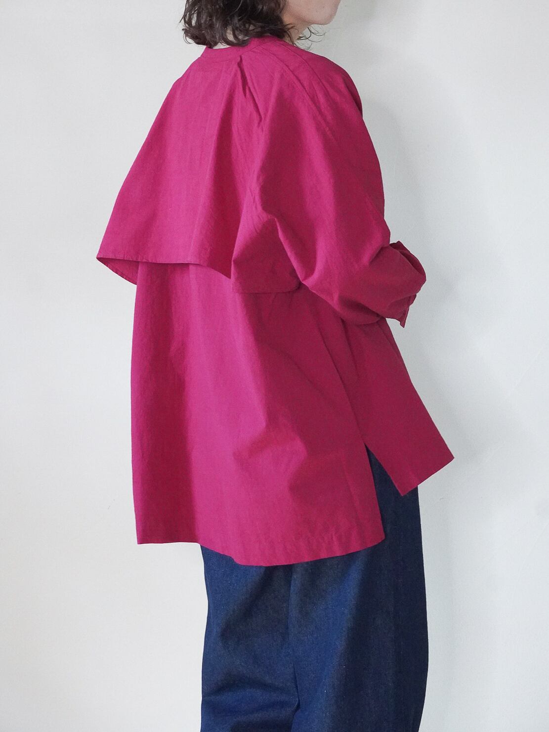 ふんわりとしたバックヨークで。シンプルなシャツスタイルにリラックスした抜け感をプラスしました!